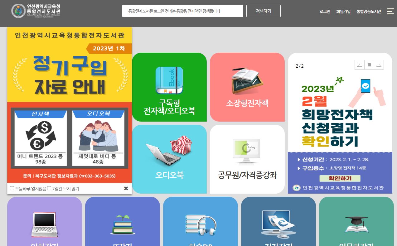 by 이장열 편집인 북구도서관(관장 임현국)은 2023년도 신간 전자책과 오디오북 등 146종 730권의 전자도서를 구입해 통합전자도서관에서 서비스한다고 10일 밝혔다. 이번에 구입한 자료는 각종 인기도서와 이용자들의 관심도가 높은 분야, 어린이·청소년 대상 교양, 문학 자료 등 전자책 98종 490권과 인문·문학 자료와 영·유아, 어린이 대상 자료 등 오디오북 48종 240권이다. 인천시교육청통합전자도서관은 구독형 전자책과 오디오북 …
