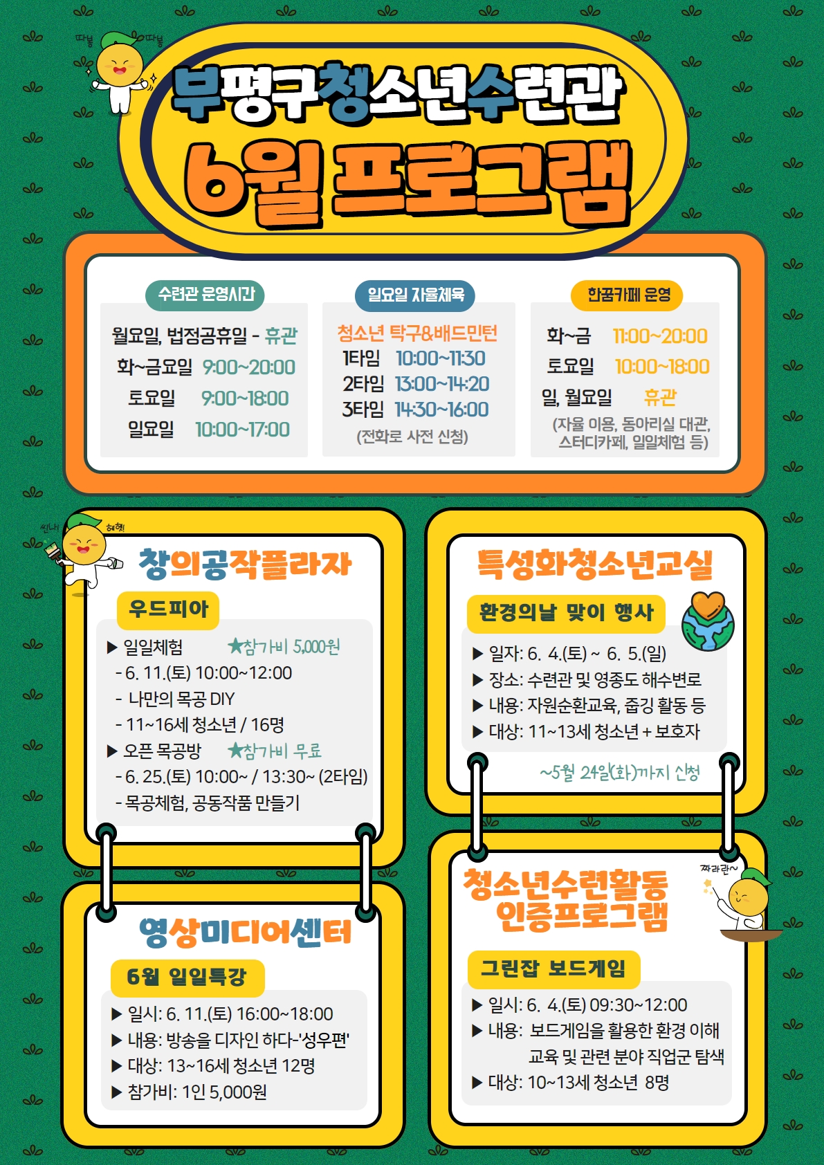 Read More »부평구청소년수련관, 6월 청소년 프로그램 운영