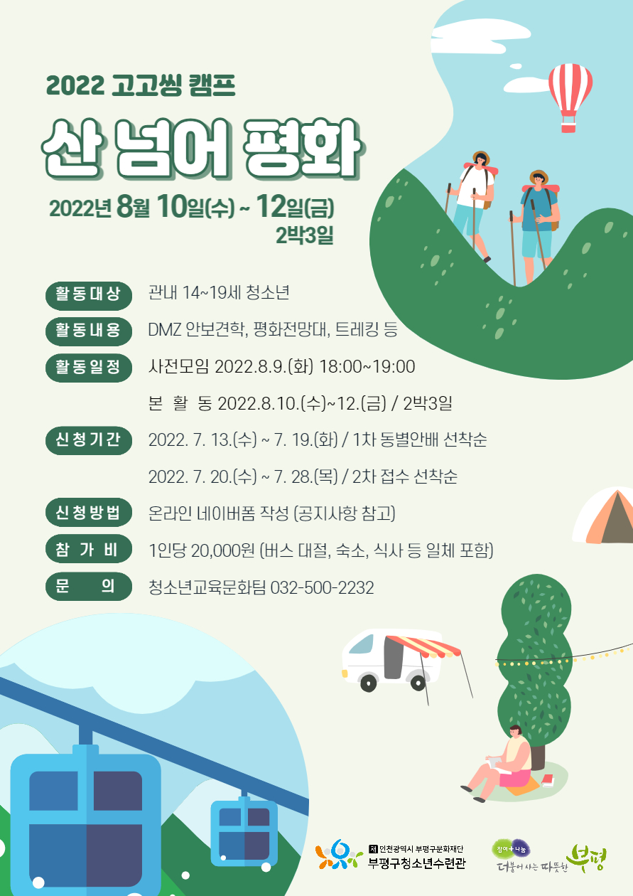 Read More »부평구청소년수련관, 2022년 고고씽캠프 ‘산 넘어 평화’ 참가자 모집