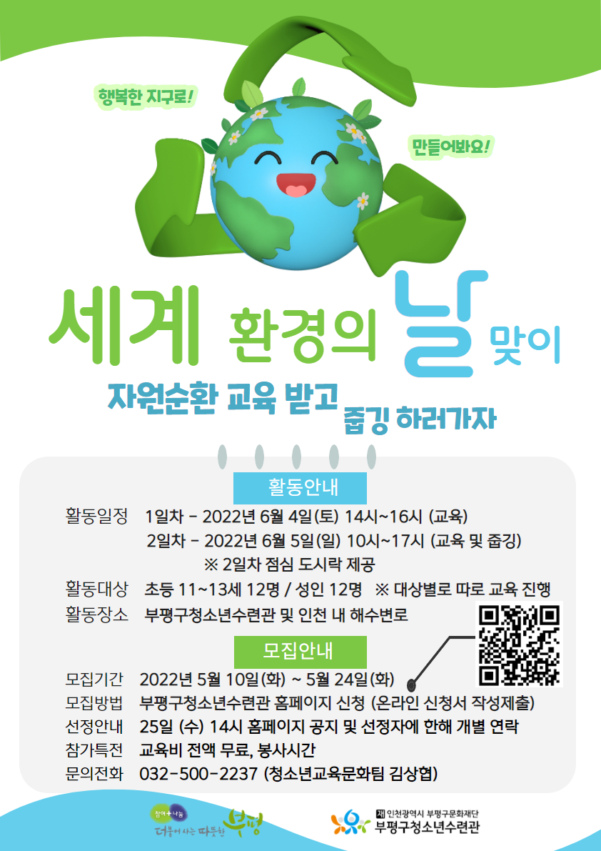 Read More »부평구청소년수련관, ‘세계 환경의 날’ 맞이 줍깅 행사 참가자 모집