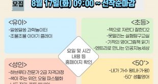 by 이장열 편집인 북구도서관(관장 나영희)은 지역 주민들의 다양한 학습 기회를 제공하고 행복한 삶을 지원하기 위해 2021년의 하반기 평생학습프로그램의 학습자를 모집한다. 유아(6~7세) 대상으로는 과학 놀이를 통한 과학 호기심을 일깨워줄 수 있는 ‘알쏭달쏭 과학놀이터’와 다양한 주제 책 읽기와 클레이 독후활동으로 이루어지는 ‘조물조물 이야기 클레이’ 프로그램이 준비되어 있다. 초등학생은 독서와 논술 활동을 연계한 …