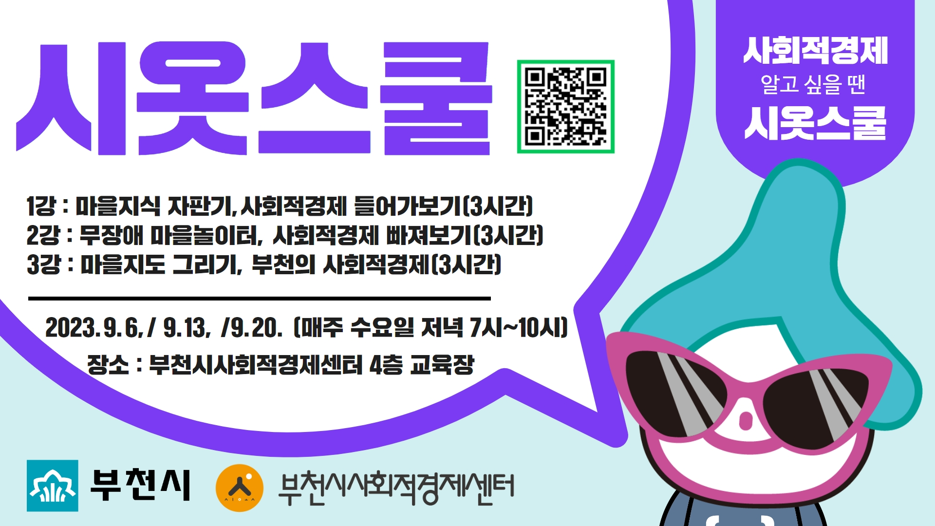 Read More »부천시, 하반기 사회적경제 교육 ‘시옷스쿨’ 개강..오는 9월 5일까지 수강생 선착순 모집