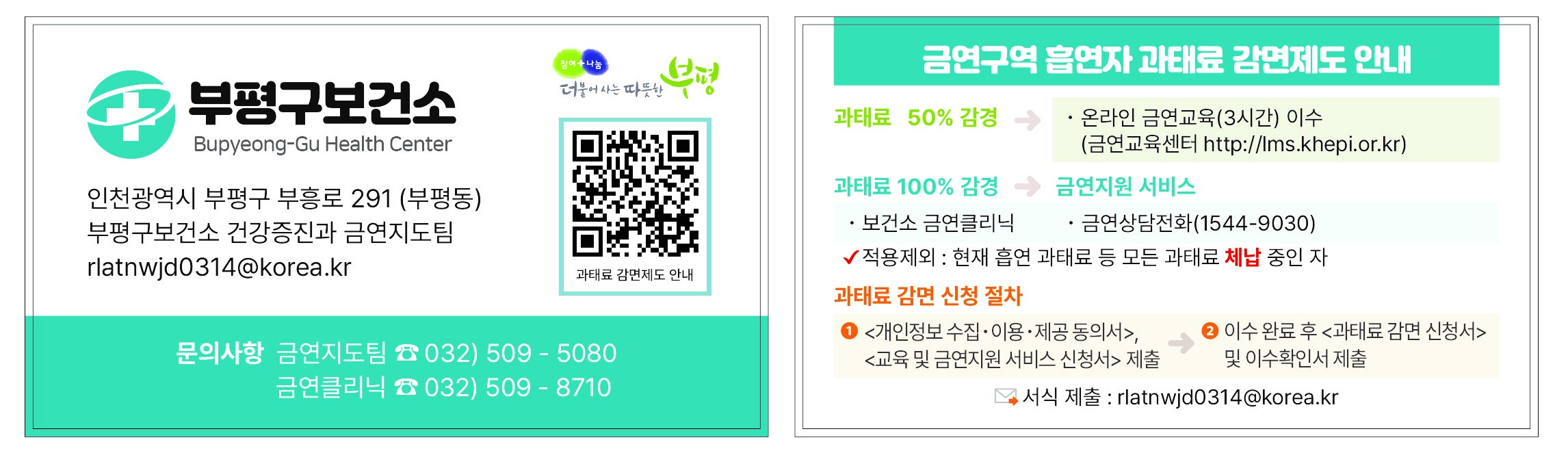 Read More »부평구, 인천시 최초 흡연 과태료 감면제도 QR코드로 홍보