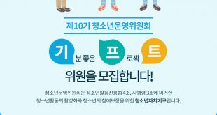 by 김성화 기자 부평구청소년수련관이 수련관의 청소년활동을 모니터링하고 정책 제안 활동 등을 통해 수련관을 이끌어 갈 제10기 청소년운영위원회 ‘기.프.트’ 신규 위원을 오는 30일까지 모집한다. 청소년운영위원회는 청소년활동진흥법 4조에 따라 청소년 활동의 활성화와 청소년의 참여보장을 위해 운영하는 청소년 자치기구다. 부평구에 거주하는 9~24세 청소년이면 누구나 신청 가능하다. 제10기 청소년운영위원회는 청소년의 눈높이에 맞는 수련관을 만들기 …