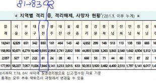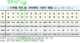 [2021/07/19/0]코로나19인천지수: 확진7,913명*(전일대비 추가 67명:지역감염 62명, 해외유입 5명) 확진7,913명*(67명:해외5명,지역62명),격리876명(26명),완치퇴원6,976명(41명),사망61명(-) [전국] 백신 괸련 사망: 전일대비 추가 1명(누적 415명). 2021. 2. 26 이후. [전국] 코로나19 사망: 전일대비 추가 1명(누작 2,018명, 치명율 1.16%). 2020. 1. 3 이후. [질병관리청]