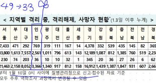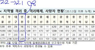 [2021/01/09/0시]코로나19인천지수: 확진3,333명*(전일대비 추가 49명:지역감염 46명, 해외유입 3명) *사망 추가 2명(총 36명) 확진3,333명*(49명:해외3명,지역46명),격리775명(-),완치퇴원2,522명(47명),사망36명(2명) 인천 임시 선별검사소(13군데) 익명 누적 확진자: 총 241명(전일대비 추가 5명) – 2020. 12. 15 검사 시작 [질병관리청]