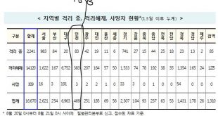 Read More »[8/24/0시]확진543명(20명:해외0명,지역20명),격리155명(20명),완치퇴원385명(-),사망3명(-)