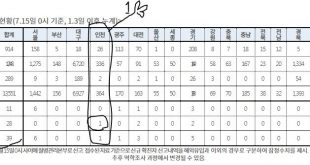 Read More »[7/18/0시]확진369명(2명:해외1명,지역1명),격리25명(1명),완치퇴원342명(1명),사망2명(-)