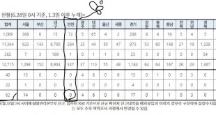 [6/29/0시]코로나19 인천지수: 확진 338명(전일대비 추가 1명: 지역감염) 확진338명(1명:해외0명,지역1명),격리53명(-19명),완치퇴원284명(20명),사망1명(-) [질병관리본부]
