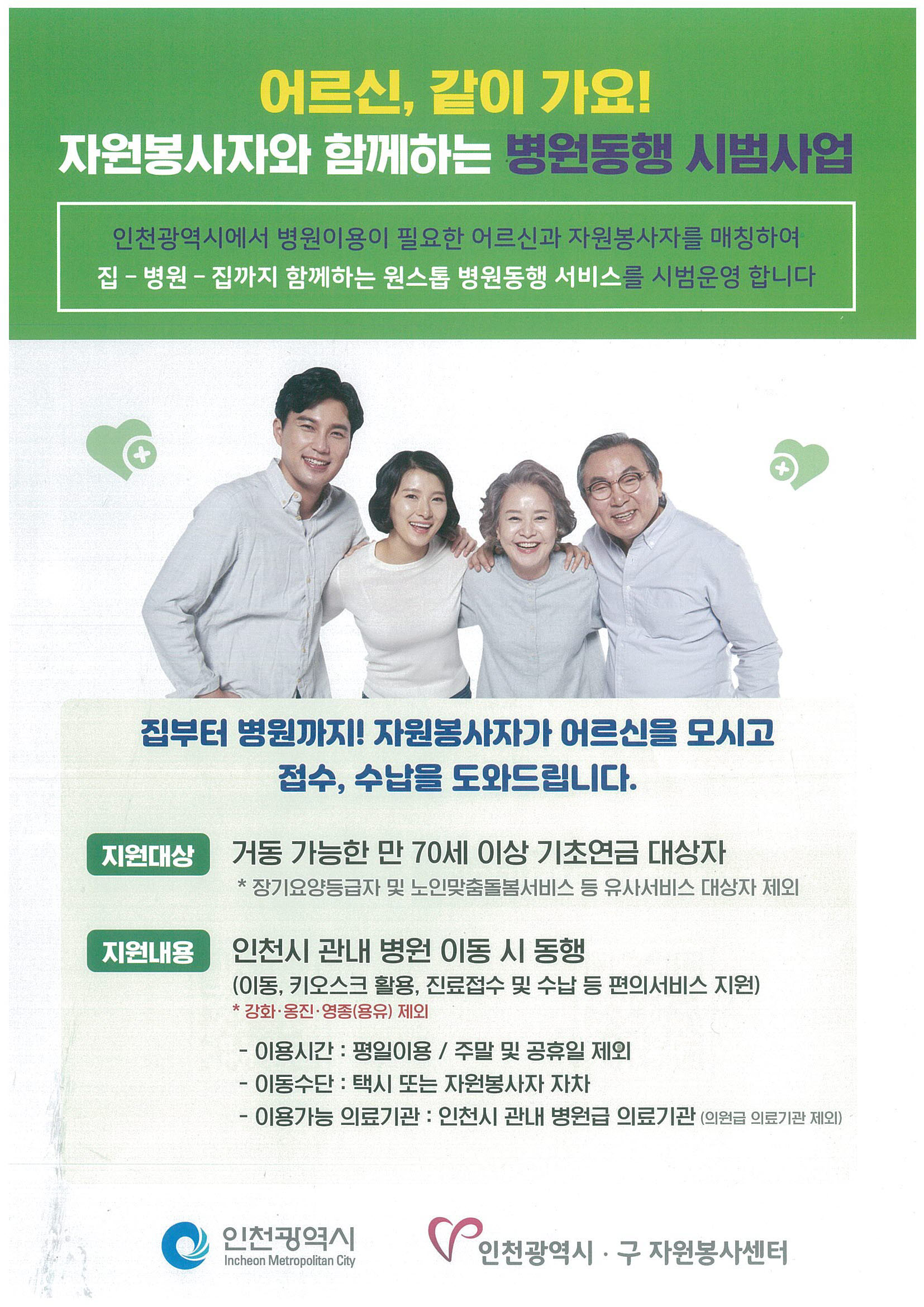 Read More »부평구자원봉사센터, 병원동행서비스 지원사업 신청 모집
