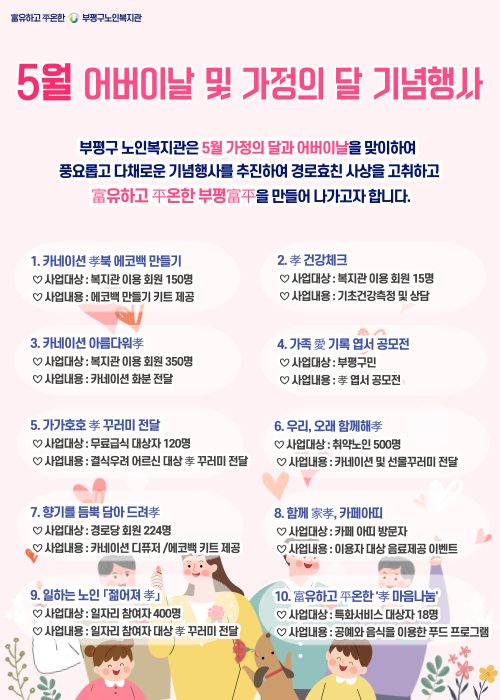 Read More »부평구노인복지관, 5월 가정의 달 기념 행사 다채롭고 풍성