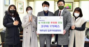 by 정재환 기자 부평구는 지난 6일 부평동 파리상뜨 입주자대표회의로부터 고구마(5kg) 175상자를 전달받았다. 파리상뜨 입주자대표회의는 설 명절을 맞이해 코로나19로 어려움을 겪고 있는 지역사회 내 소외된 이웃을 돕고 싶다는 뜻과 함께 후원품을 기탁했다. 이상진 파리상뜨 입주자 대표는 “코로나19로 추운 겨울을 보내는 어려운 이웃들에게 명절을 맞이해 조금이나마 도움이 되길 바라는 마음으로 기부했다”고 전했다. …