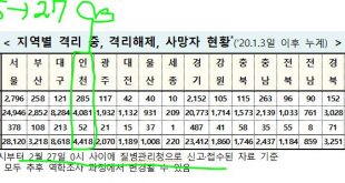 [2021/02/27/0시]코로나19인천지수: 확진4,418명*(전일대비 추가 27명:지역감염 27명, 해외유입 0명) 확진4,418명*(27명:해외0명,지역27명),격리285명(13명),완치퇴원4,081명(14명),사망52명(-) 인천 임시선별검사소(6군데) 누적 확진자: 총 369명(전일대비 추가 3명)