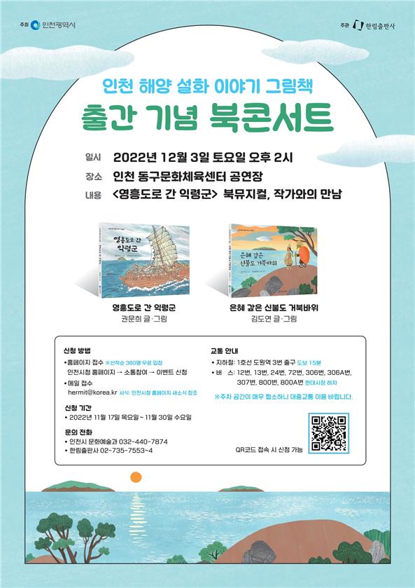 by 이장열 편집인 168개 섬을 보유한 인천시가 주요 섬과 관련된 해양 설화를 담은 10종의 그림책 시리즈를 완성했다. 21일 인천시는 오는 12월 3일 동구문화체육센터에서 시민, 학생 등이 참석한 가운데, ‘2022 인천 해양 설화 이야기 그림책 출간 기념 북콘서트’를 개최한다고 밝혔다. 이번 북콘서트는 시가 문화자산 아카이빙 사업으로 추진한 인천 해양 설화 그림책 …