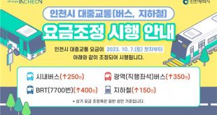 Read More »10월 7일 첫차부터 인천 지하철·버스 요금 일제히 인상..8년 만에