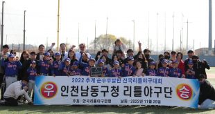 by 이장열 편집인 한국 리틀야구의 강호 남동구청 리틀야구단(감독 백승설)이 올 시즌 마지막 대회를 우승을 차지했다.. 21일 남동구는 ‘2022년 추계 순수주말반 전국리틀야구 대회’에서 남동구청 리틀야구단이 우승을 차지했다고 밝혔다. 이 대회의 백미는 단연 순수주말반 최강을 놓고 겨룬 결승전으로, 남동구청 리틀야구단과 구로구 리틀야구단이 맞붙었다. 순수주말반 특성상 중학교 1학년생까지 출전 가능한 대회이다 보니 다수의 …