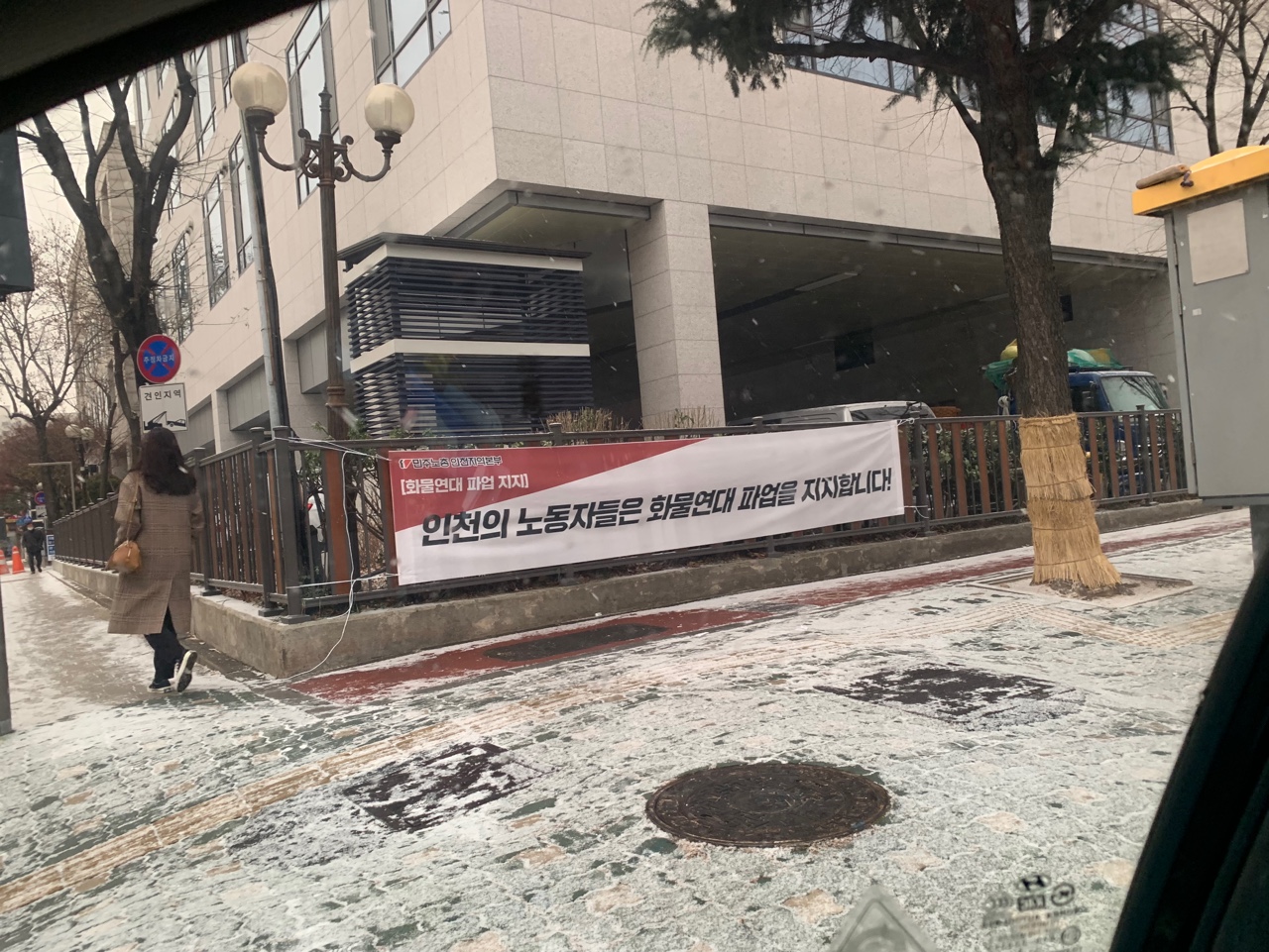 by 이장열 편집인 부평구도 화물연대 파업을 지지하는 걸까? 부펑구청 관할 담장에 민주노총 인천지역본부가 내건 ‘화물연대의 파업을 지지합니다” 현수막이 12월 2일부터 12월 14일까지 11일째 아무런 제재 없이 걸려 있어서 대통령과 정부가 나서서 불법파업이라고 규정한 화물연대 파업을 부평구가 지지하는 듯한 인상을 시민들에게 주고 있기에 더욱 문제로 다가온다. 부평구청 관할 담벼락에도 구청 자체 …
