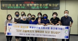 by 김성화 기자 갈산1동은 지난 16일 동 행정복지센터 회의실에서 2022년 마을복지계획인 ‘특별한 오늘 지원사업’의 중간평가회 워크숍을 진행했다. 이번 워크숍은 자체점검 및 중간평가를 위해 마련한 것으로, 주요 토의과제는 갈산1동 마을복지 사업의 계획 이행 여부다. 이날 마을복지계획 추진단은 사업 추진에 따른 성과와 애로사항을 돌아보고, 대상자들의 피드백 등을 점검했다. 정문숙 갈산1동 마을복지계획 추진단장은 …