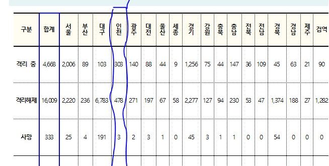 [9/5/0시]코로나19인천지수: 확진784명(전일대비 추가 14명: 지역감염 14명) 확진784명(14명:해외0명,지역14명),격리303명(-16명),완치퇴원478명(30명),사망3명(-) [질병관리본부]