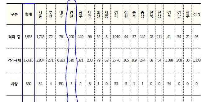 [9/11/0시]코로나19인천지수: 확진813명(전일대비 추가 8명: 지역감염 8명) 확진813명(8명:해외0명,지역8명),격리200명(-25명),완치퇴원610명(33명),사망3명(-) [질병관리본부]