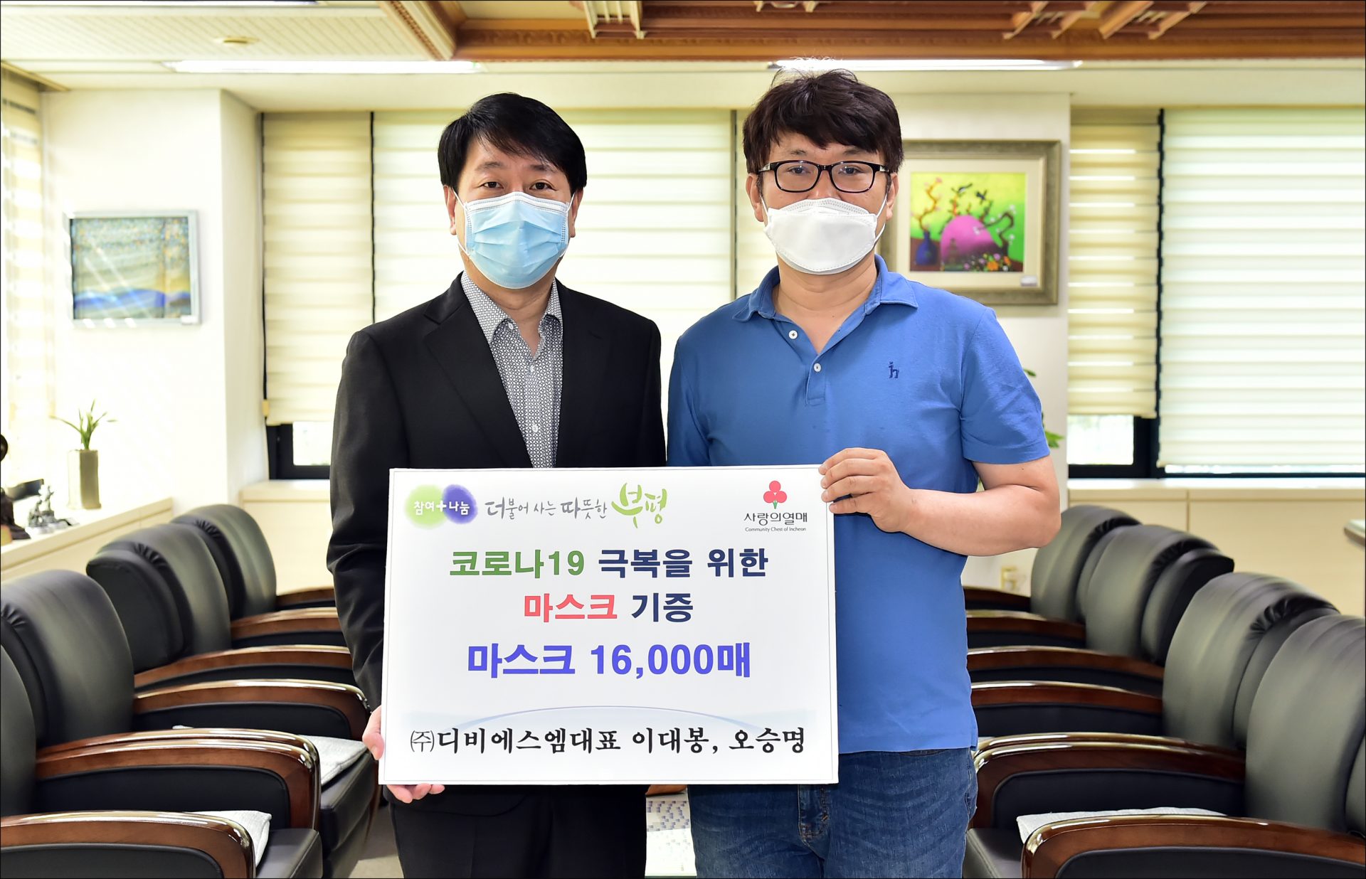 by 정재환 기자 21일 부평구는 갈산동 우림라이온스밸리에 위치한 마스크 제조업체 ㈜디비에스엠으로부터 코로나19 극복을 위한 마스크 총 1만6천 매를 기탁 받았다. 이대봉 ㈜디비에스엠 대표는 “코로나19가 지속되면서 많은 이들이 어려움에 처해 있다”며 “우리가 조금이나마 도움이 될 수 있기를 바라는 마음에서 마스크를 전달하게 됐다”고 말했다. 한편, 기증된 물품은 인천사회복지공동모금회를 통해 필요로 하는 곳에 배분할 예정이다.