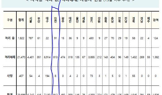 [9/29/0시]코로나19인천지수: 확진912명(전일대비 추가 0명) 확진912명(0명:해외0명,지역0명),격리91명(-15명),완치퇴원813명(15명),사망8명(-) [질병관리청]