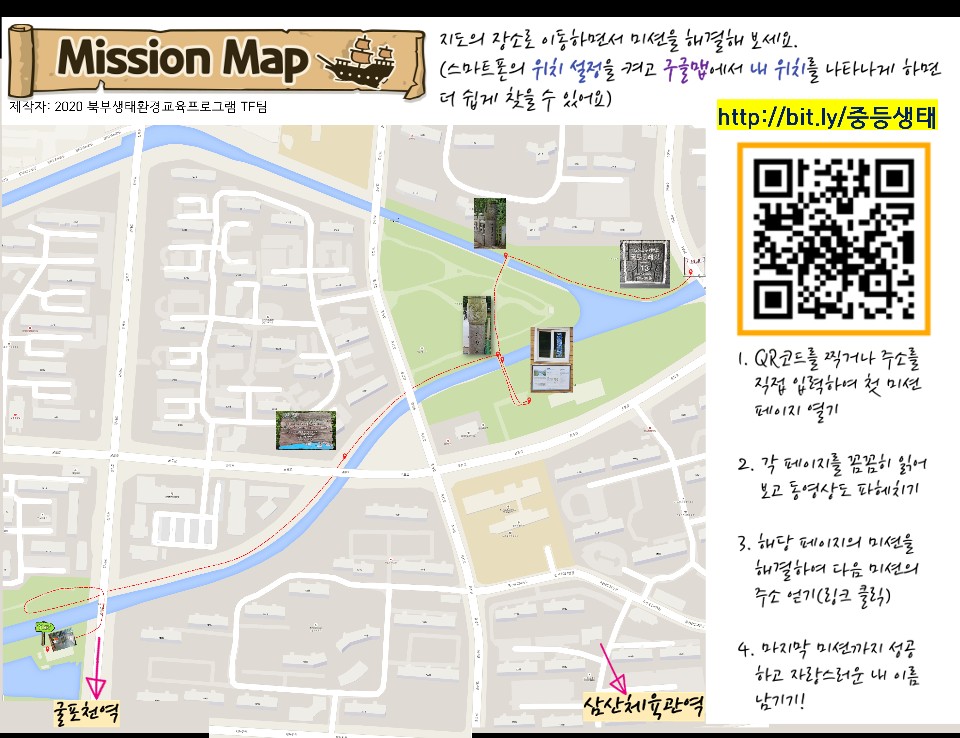 온라인 신청을 통해 선정된 초‧중학교 200여 명은 보호자와 함께 개별로 활동한다. 참가자는 제공된 지도와 스마트폰 어플리케이션, 구글 사이트를 활용해 굴포천의 미션 장소를 찾아다니며 생태와 관련된 미션을 해결한다.