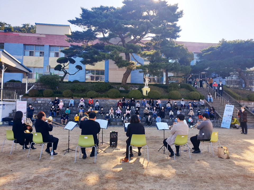 첫 번째 공연으로 10월 6일 명신초등학교에서 열린 등굣길 음악회에서는 학생들에게 친근한 ‘아기상어’, ‘Over the rainbow’, ‘Disney film favorites’ 등의 곡을 연주해 학생들의 뜨거운 호응을 얻었다.