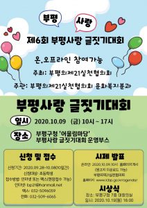 이번 제6회 부평사랑글짓기대회는 코로나19 예방을 위한 온오프에서 동시에 접수를 받는다.