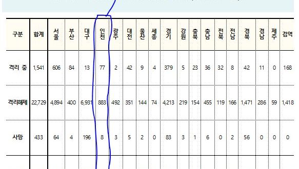 [10/12/0시]코로나19인천지수: 확진968명(전일대비 추가 3명: 지역감염 3명. 해외유입 0명) 확진968명(3명:해외0명,지역3명),격리77명(2명),완치퇴원883명(1명),사망8명(-) [질병관리청]