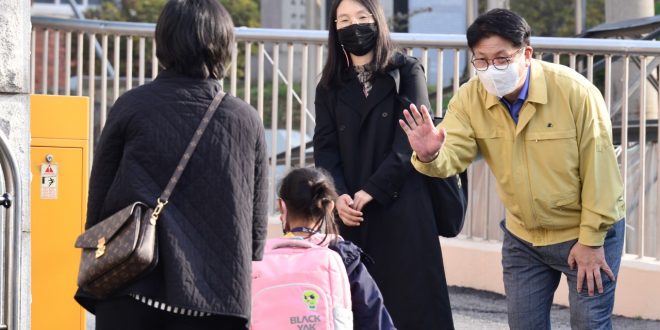by 이장열 편집인 도성훈 인천시교육감이 학교 밀집도 완화에 따른 등교수업 확대 첫날인 19일 월요일 동구에 위치한 인천창영초등학교를 방문하여 등교하는 학생들을 맞이하고 있다. 오늘부터 적용되는 학사 운영에 따라 학교 밀집도는 2/3로 완화하여 등교수업일을 확대하며 초등학교 1학년은 매일 등교하고 중학교 1학년은 주 3회 이상 등교한다.