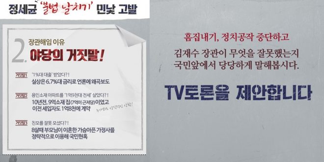 강연재 부대변인도 이정현 대표의 단식은 코메디를 넘어선 대한민국의 비극이라고 일갈했다. 그는 “국회에서 부적격 판정을 받은 장관 1명의 자리를 지켜주는 것이 집권 여당의 당대표가 밥을 굶으면서까지 투쟁해야 할 일인가”라며 “이정현 대표는 대체 어느 나라, 어느 국민의 여당 대표인가”라고 꾸짖었다.