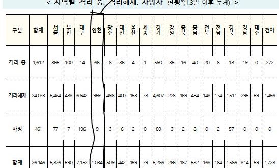 [10/28/0시]코로나19인천지수:확진1,034명(전일대비 추가 10명: 지역감염 10명, 해외유입 0명) 확진1,034명(10명:해외0명,지역10명),격리66명(7명),완치퇴원959명(3명),사망9명(-) [질병관리청]
