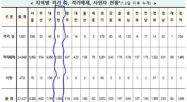 [11/08/0시]코로나19인천지수: 확진1,065명(전일대비 추가 3명: 지역감염 2명, 해외유입1명) 확진1,065명(3명:해외1명,지역2명),격리51명(2명),완치퇴원1,003명(1명),사망11명(-) [질병관리청]