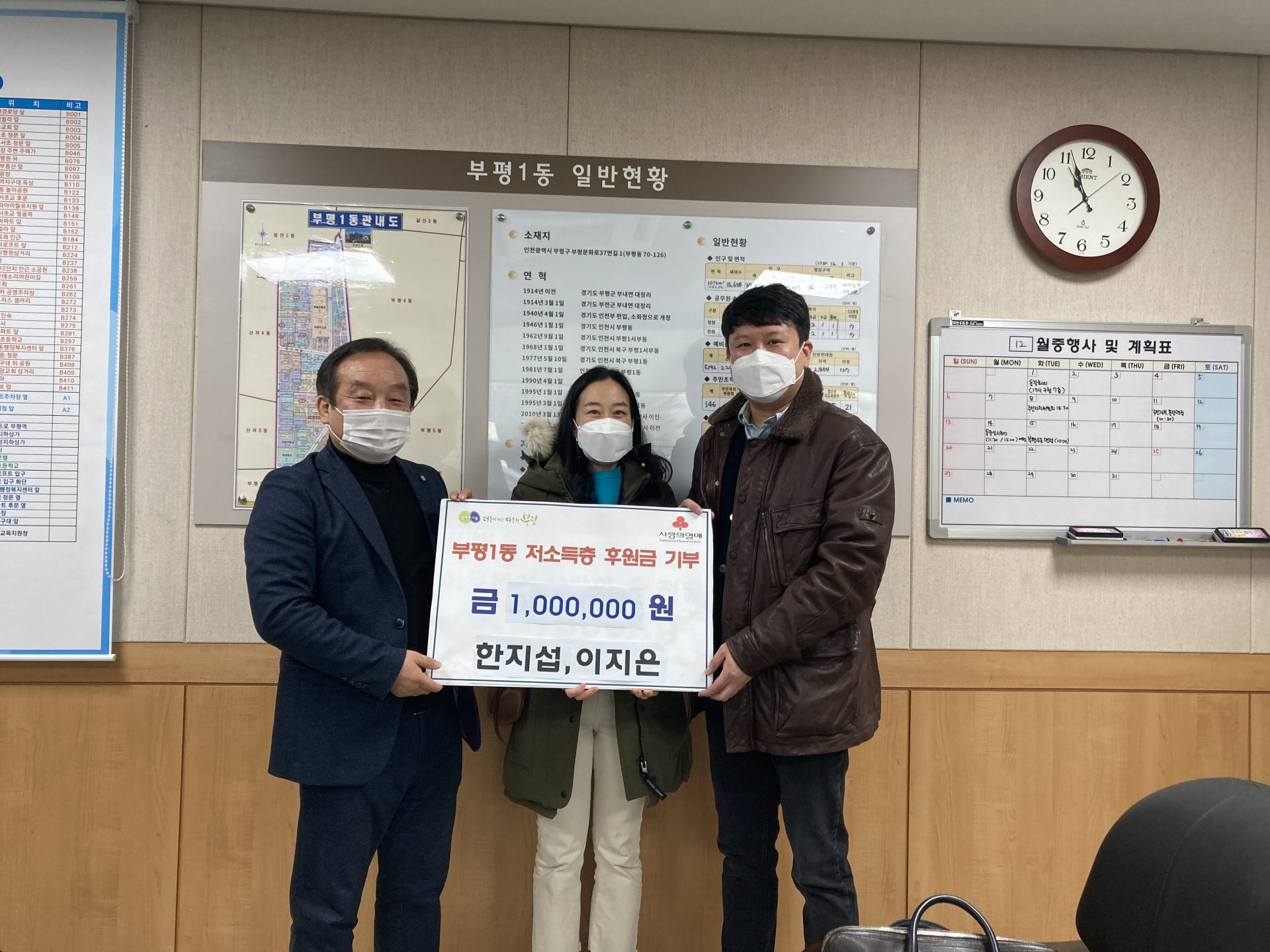 류영기 부평1동장은 “여러모로 힘들었던 한해였음에도 연말을 맞아 이웃사랑을 실천해 준 후원자에 감사하다”며 “전달받은 기탁금은 소외되고 어려운 이웃을 위해 사용할 예정”이라고 말했다.