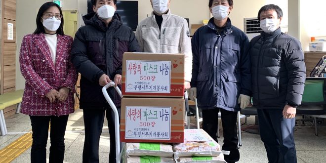 지난 13일 삼산1동 행정복지센터는 부평서무지개봉사회로부터 마스크 1천 장과 백미 100kg를 기탁 받았다.