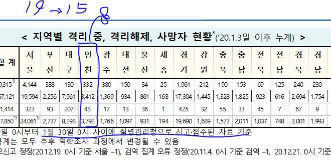 [2021/01/30/0시]코로나19인천지수: 확진3,792명*(전일대비 추가 15명:지역감염 15명, 해외유입 0명) 확진3,792명*(15명:해외0명,지역15명),격리332명(-6명), 완치퇴원3,412명(21명),사망48명(-) 인천 임시선별검사소(8군데) 익명 누적 확진자: 총 3030명(전일대비 추가 5명) - 2020. 12. 15 검사 시작. [질병관리청]