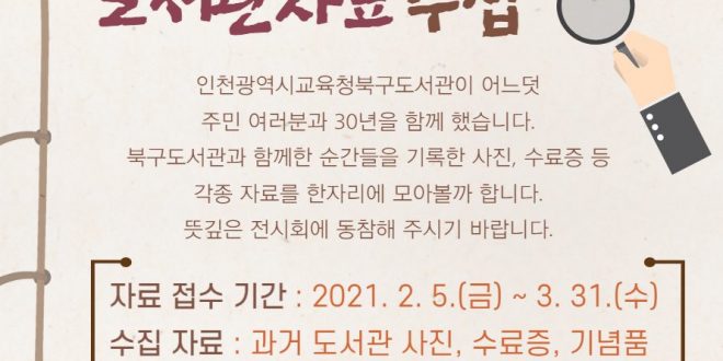 북구도서관(관장 나영희)은 개관 30주년을 맞아 도서관 변천사를 알 수 있는 사진 및 각종 자료를 수집한다고 밝혔다.