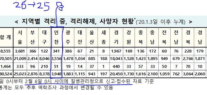 [2021/02/06/0시]코로나19인천지수: 확진3,948명*(전일대비 추가 25명: 지역감염 24명, 해외유입 1명) 확진3,948명*(25명:해외1명,지역24명),격리341명(-3명), 완치퇴원3,556명(28명),사망51명(-) 인천 임시선별검사소(8군데) 익명 누적 확진자: 총 329명(전일대비 추가 6명) - 2020. 12. 15. 검사시작 [질병관리청]