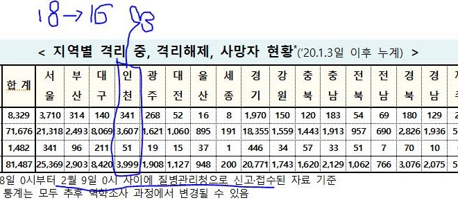 [2021/02/09/0시]코로나19인천지수: 확진3,999명*(전일대비 추가 16명:지역감염 14명, 해외유입 2명) 확진3,999명*(16명:해외2명,지역14명),격리341명(4명), 완치퇴원3,607명(12명),사망51명(-) 인천 임시선별검사소(8군데) 익명 누적 확진자: 총 332명(전일대비 추가 0명) - 2020. 12. 15. 검사시작. [질병관리청]