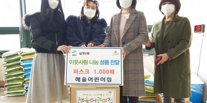최근 십정2동 행정복지센터는 십정2동에 자리한 해솔어린이집으로부터 코로나19 감염 예방을 위한 마스크 1천 매를 기탁받았다.