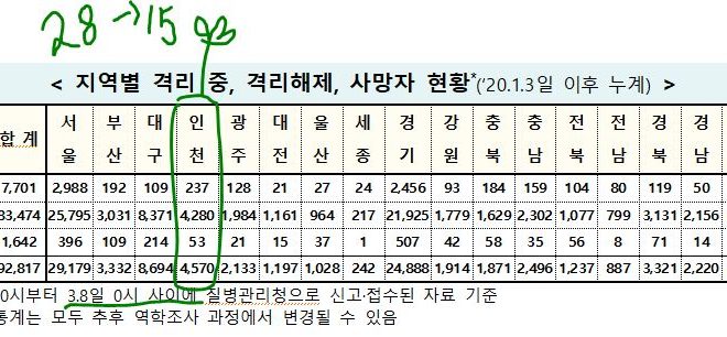 [2021/03/08/0시] 확진4,570명*(전일대비 추가 15명:지역감염 15명, 해외유입 0명) 확진4,570명*(15명:해외0명,지역15명),격리237명(-10명),완치퇴원4,289명(34명),사망53명(-) 인천 임시선별검사소(6군데) 누적 확진자: 총382명(전일대비 추가 0명). 2020. 12. 15. 검사시작.[질병관리청]