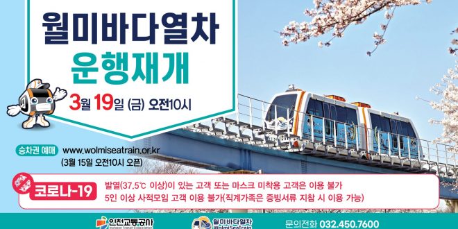 공사 정희윤 사장은 “따스한 봄기운이 완연해지기 시작하는 시기에 월미바다열차의 운행을 재개하게 되어 매우 기쁘게 생각한다.”며 “이용고객 본인은 물론 타인의 건강과 안전을 위해 마스크 착용 철저 등 방역수칙을 반드시 지켜주시길 당부드린다”고 말했다.