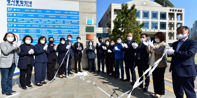 최근 5일 부평구는 구청 어울림 마당에서 친환경 자원순환 청사 현판식을 열었다.
