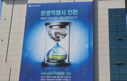 환경특별시 인천이 제일 먼저 하는 것이 1회용 컵을 사용하지 않는 페포먼스를 진행한 것이다. 그리고 광고를 인천시내 전역에 나부끼게 했다. 현수막을 사용하고 나면 쓰레기로 변한다. 쓰레기 줄이는 것이 제일 큰 명분으로 내세우는데 진작 그런 데에는 둔감하다. 뭔가 하는 걱처럼 해야 하기에 그렇다.