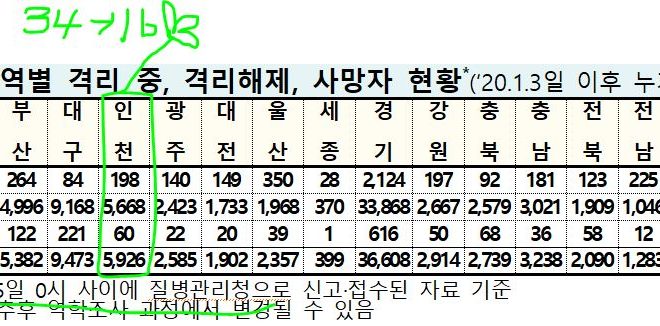 [2021/05/15/0시]코로나19인천지수: 확진5,926명*(전일대비 추가 16명:지역감염 16명, 해외유입 0명) 확진5,926명*(16명:해외0명,지역16명),격리198명(1명),완치퇴원5,668명(15명),사망60명(-) 인천 임시선별검사소(6군데) 누적 확진자: 총 557명(전일대비 추가 1명). [질병관리청]