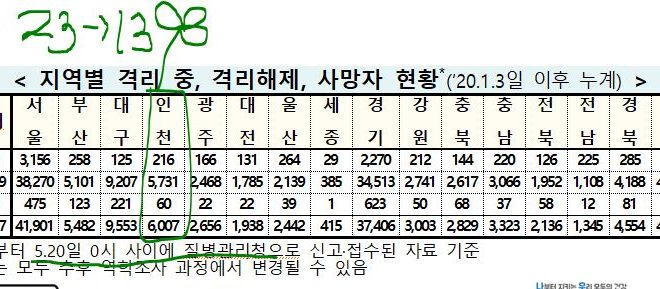 [2021/05/20/0시]코로나19인천지수: 확진6,007명*(전일대비 추가 13명:지역감염 13명, 해외유입 0명) 확진6,007명*(13명:해외0명,지역13명),격리216명(7명),완치퇴원5,731명(6명),사망60명(-) 인천 임시선별검사소(6군데) 누적 확진자: 총 566명(전일대비 추가 1명). [질병관리청]