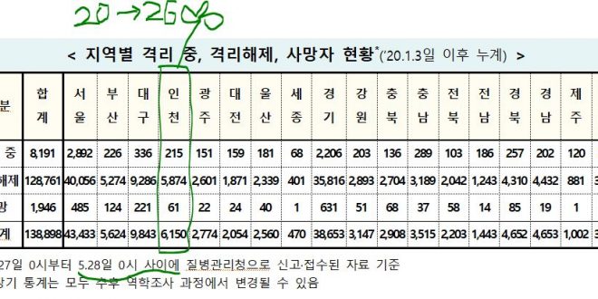[2021/05/28/0시]코로나19인천지수: 확진6,150명*(전일대비 추가 26명:지역 감염 26명, 해외유입 0명) 확진6,150명*(26명:해외0명,지역26명),격리215명(4명),완치퇴원5,874명(22명),사망61명(-) [질병관리청]