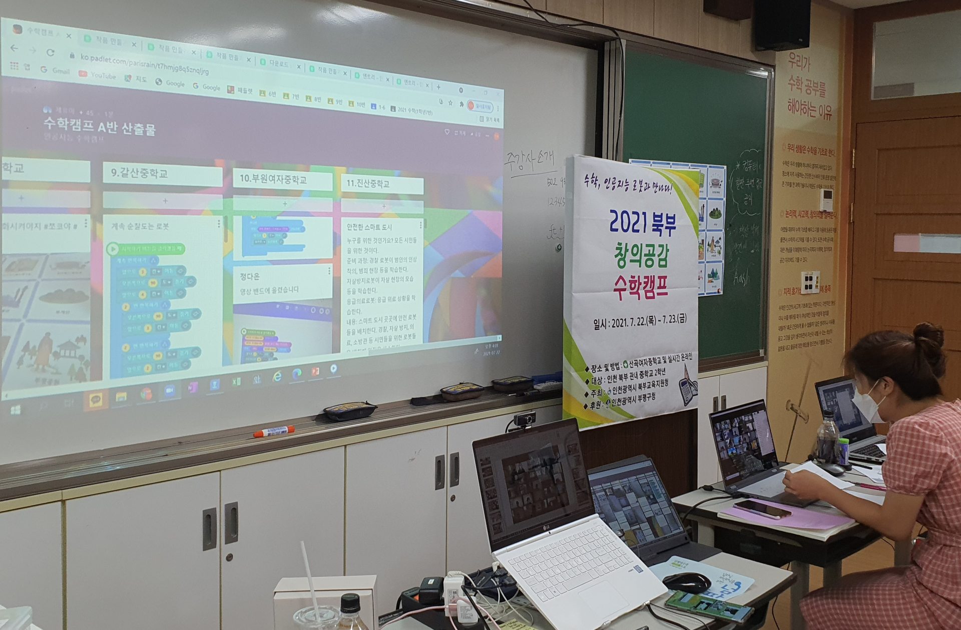 북부교육지원청(교육장 이혜경)은 지난 22일(목)~23일(금)까지 북부 21개 중학교 2학년 학생 64명이 참여한 가운데 ‘2021 북부 창의융합 수학캠프’를 운영하였다고 밝혔다.