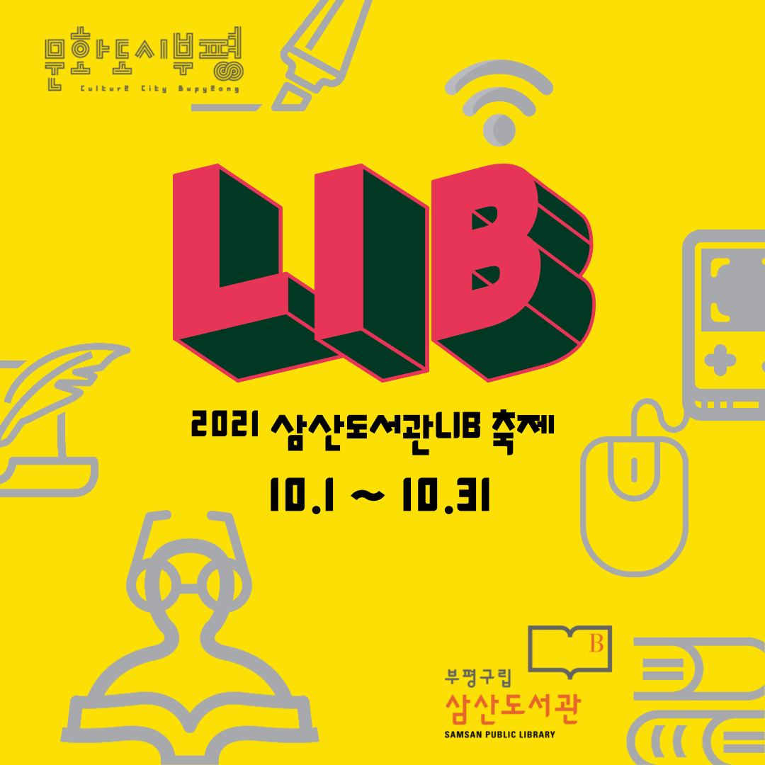 매년 ‘삼산LIB 축제’를 진행한 삼산도서관은 법정문화도시 부평을 기념해 로컬(Local: 문화를 여는 부평), 인터페이스(Interface: 미래를 여는 도서관), 북(Book: 책으로 통하는 우리)등 ‘L.I.B.’ 세 가지 주제로 지역의 문화와 변화된 디지털 환경에 대한 최신 트렌드를 전달할 예정이다.